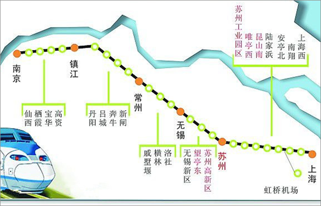 滬寧城際鐵路,運(yùn)行時(shí)速350公里/小時(shí),至上海30分鐘